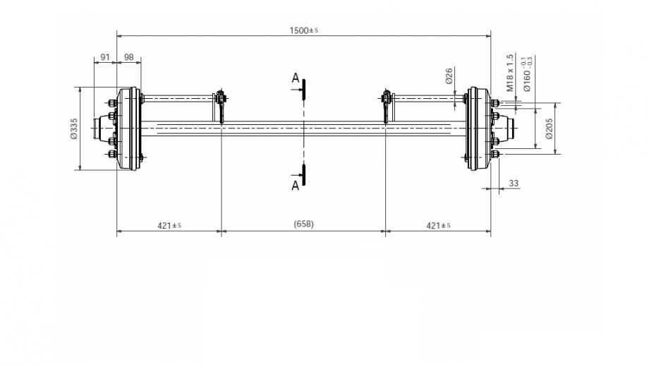 10980 - Osovina za prikolicu 4800 kg sa kočnicama (1500mm)