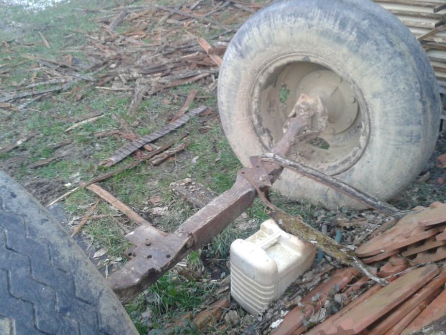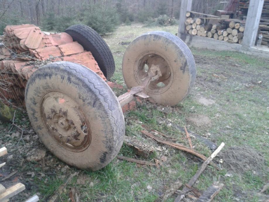 Prodaje se osovina za traktorsku prikolicu sa gumama, mi smo do zadnjeg vozili 4 metara drvi, osovinu treba malo doradit, lageri imaju lufta,neki sarafi se nedaju stegnut, gume su pune,jedna je jače poderana, osovina je od kamiona deutz, Cjena za osovinu u ovakvom stanju je 850 kuna, nalazim se u okolici Velike Gorice 098 910 8900