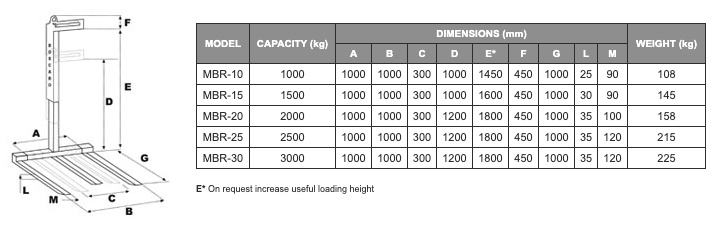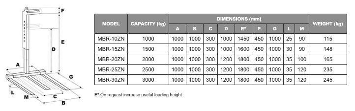 * Na zahtjev također dostupne su pocinćane vilice, vilice drugih kapaciteta i duljine klinova.