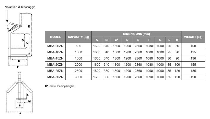 * Na zahtjev također dostupne su pocinćane vilice, vilice drugih kapaciteta i duljine klinova.