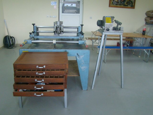 Više kompleta šablona i brusilica za oštrenje noževa.