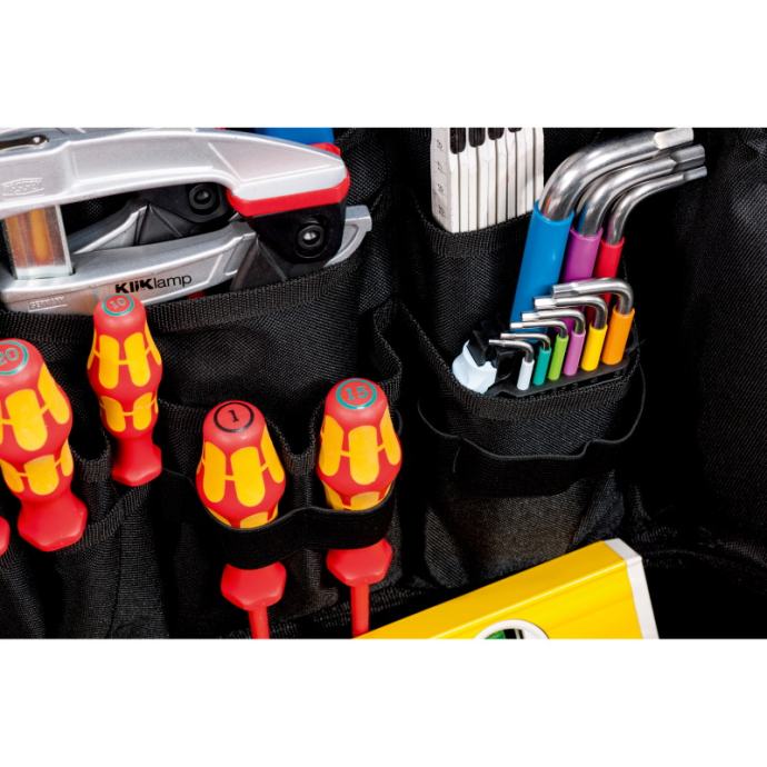 Ima mjesta za do 50 alata u 15 džepova, 6 gumenih omči i 4 dodatna prostrana pretinca za pohranu.