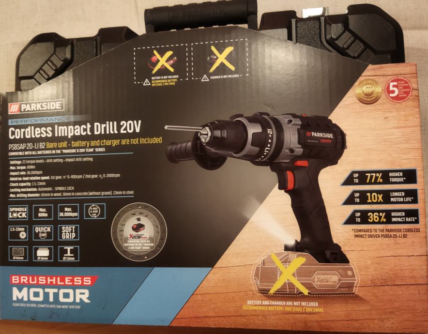 Prodajem akumulatorsku udarnu bušilicu Parkside performance s 5 godina garancije.