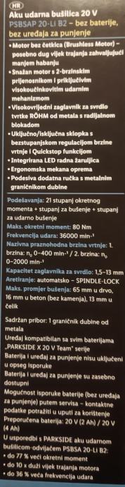 Parkside aku udarna bušilica performance, 400kn, Split, Novo, 5g garan