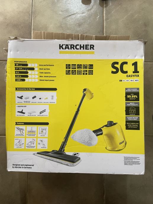 Prodajem parni čistač Kärcher SC 1 EasyFix. Uređaj je nov, u originalnoj ambalaži. Idealan za brzo i učinkovito čišćenje kuhinje, kupaonice, pločica, podova i teško dostupnih mjesta. Čisti parom bez kemikalija i uklanja do 99,99% bakterija.