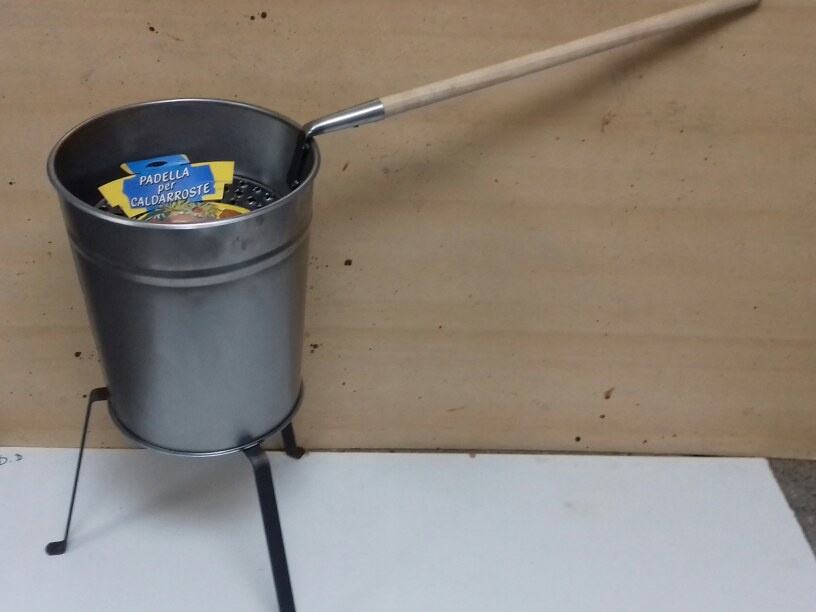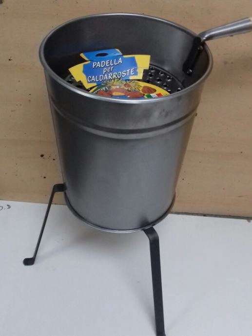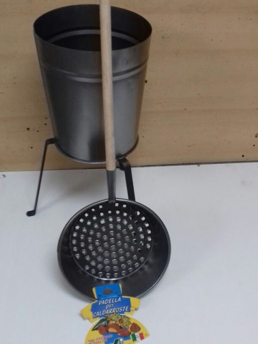Prodam pekac kestena, tavu od spec. materijala za prehranu.promjer 26.,5 do 27 cm.Vrijednost 25 e.Prodam za 149 kn.kom. Moguca dostava postom.A Pokretna pecenjara na drva,ili plin sa velikom tavom na drvenoj dugoj dršci cijena = ( vrijednost 165 e.) po upitu, dogovor.