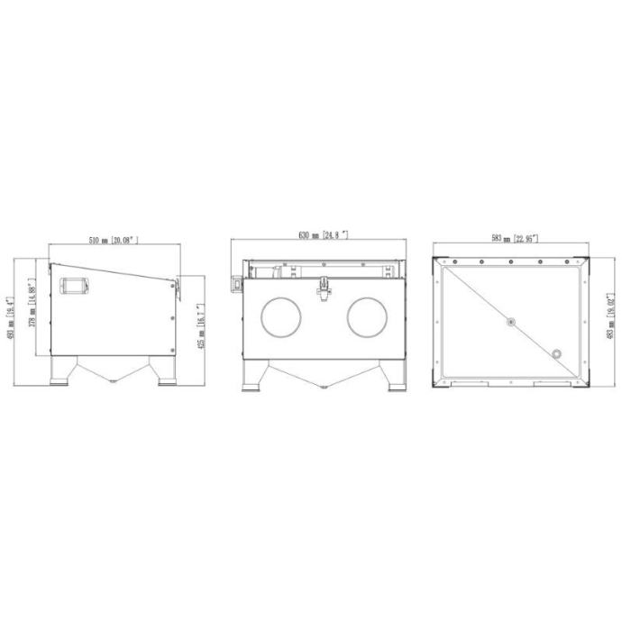 Ukupne dimenzije: 630 mm (duljina) x 510 mm (širina) x 493 mm (visina)