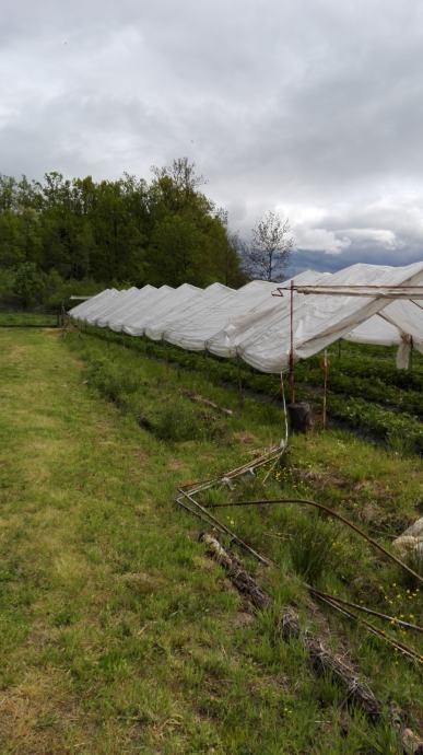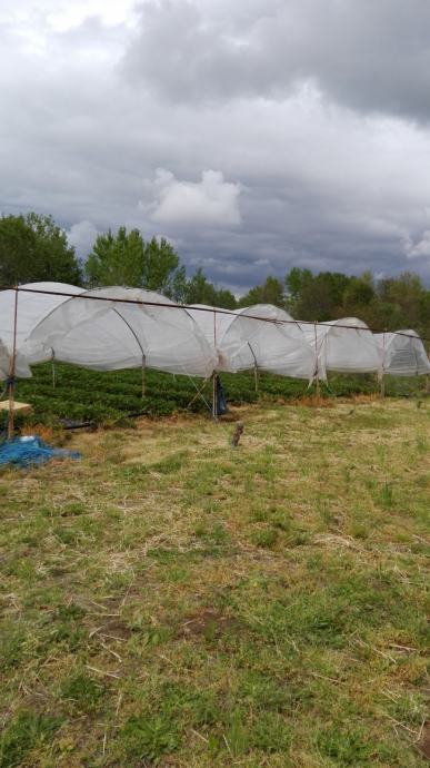 Plastenici duzine 25met,širine 24met,širina luka 4.80,plastenici su za jagode prodajemo tri plastenika.plastenici nosaci cijevi su promjera fi 25 lukovi su od pocincani cijevi 1/2cola.