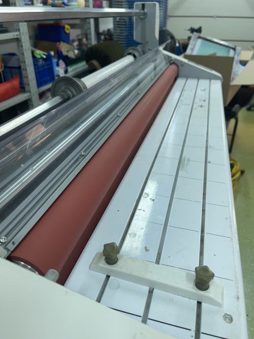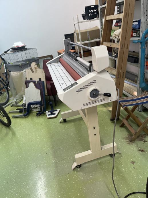 Plastifikator Eagle od 105 cm širine, za toplu i hladnu plastifikaciju. U dobrom stanju sa potpuno novim valjcima.