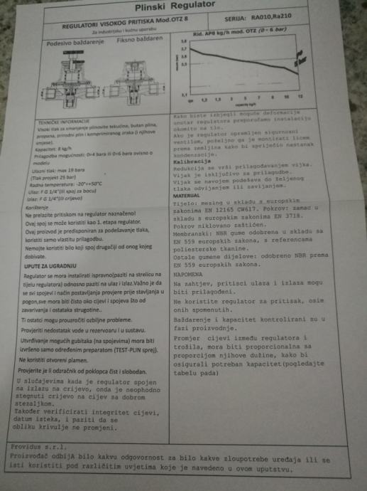 Crijevo za plin (propan-butan) služi za provođenje plina od plinske boce do trošila
