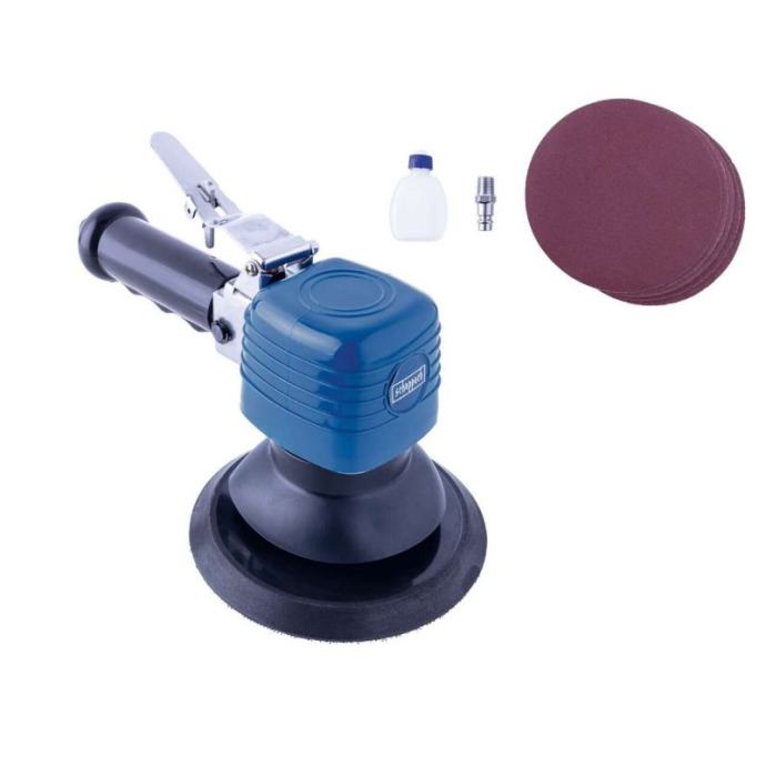 pneumatska ekscentrična brusilica 6” je alat za brušenje ravnih i zakrivljenih površina, gdje je prioritet kontrola brušenja i stabilan rad na komprimiranom zrakuradni tlak do 6,3 bara i potrošnja zraka 93,4 L/min definiraju zahtjev prema kompresoru i instalaciji, dok brzina do 10.000 o/min cilja brz odaziv pri obradi većih površinapromjer diska 140 mm pokriva širi trag po prolazu i smanjuje broj prolaza na panelima, pločama i elementimaojačano kućište je izvedeno za rad u radionici i čestu upotrebuu isporuci je osnovni startni set potrošnog materijala: brusna ploča i brusni papiri granulacija 60, 80, 100, 120 i 150, uz bocu ulja za podmazivanje pneumatskog sustava Tehnički podaci Naziv Pneumatska ekscentrična orbitalna brusilica Promjer brusnog diska 140 mm (6”) Brzina Do 10.000 o/min Maks. radni tlak 6,3 bara Potrošnja zraka 93,4 L/min Neto težina 1,8 kg Bruto težina 2,1 kg Dimenzije (D × Š × V) 285 × 150 × 155 mm Opseg isporuke Brusna ploča; 5× brusni papir (60/80/100/120/150); boca ulja Baterija/akumulator Nije uključeno Vrsta pogona Pneumatski (bez pogona) ]]>