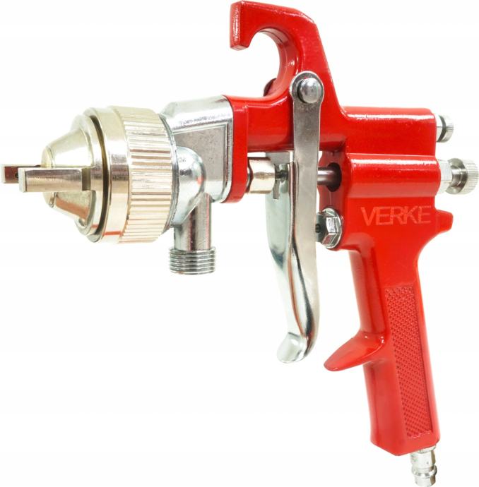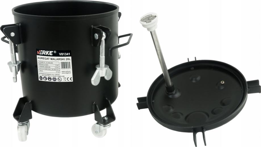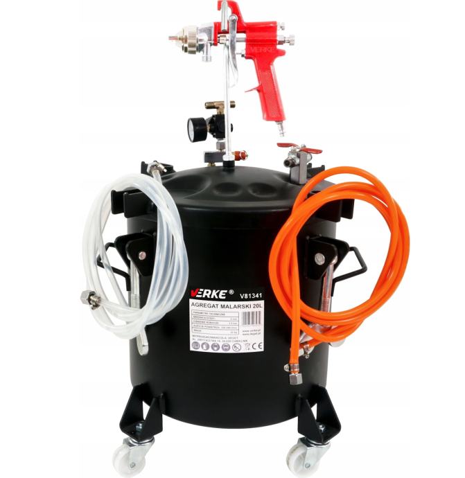 Pneumatski pištolj za raspršivanje koji se koristi u kombinaciji s lakom. Set sadrži vrlo dobre parametre prskanja i visoku brzinu boja. Sustav prskanja omogućuje vam korištenje velikih količina boje koje se brzo primjenjuju, štedi vrijeme i novac. Glatka posuda tlaka čelika s visokom otpornošću na koroziju. Jedinica se može koristiti za nanošenje gotovo svih boja i laka, ljepila, emulzija, lazura, antikorrozijskih boja i pozadina. Spremnik je opremljen s 4 rotirajuća kotača za lako kretanje.