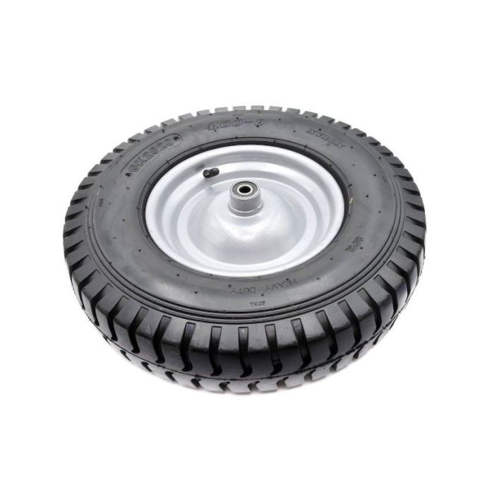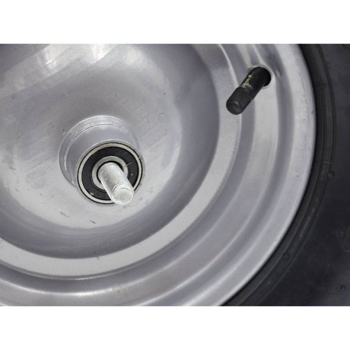 kotač 4.00-8 8PR za kolica s maksimalnom nosivošću do 180 kgizdržljivi metalni naplatak s praškastim premazom osigurava povećanu stabilnostizrađen od visokokvalitetnih materijalaset uključuje osovinu od 12 mmTehnički podaci: maksimalno opterećenje: 180 kgvanjski promjer gume: 405 mmširina gume: 95 mmunutarnji promjer gume: 220 mmpromjer otvora osovine: 12 mmširina glavčine: 99 mmležajevi: dvostruki kuglični ležajevibroj slojeva u gumi: 8materijal: najlon, naplatak - čelikmaksimalni tlak: 3,44 bara / 50 psiprimjena: kolica]]>