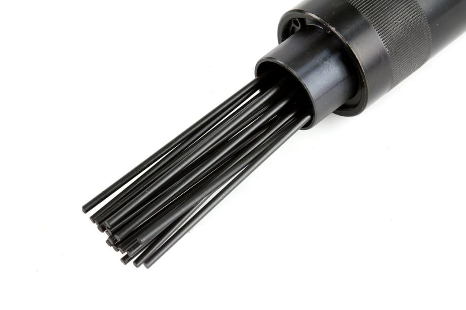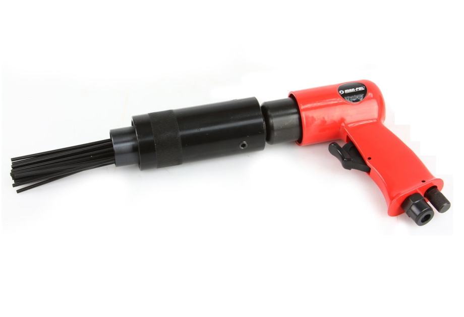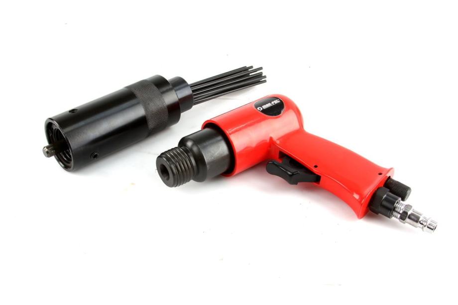 Pneumatski čekić s iglom vođen protokom komprimiranog zraka. Dizajniran za uklanjanje, između ostalog, skala, kamen za topljenje, kamen kotla, hrđa, boje od čeličnih konstrukcija u radionicama za tijelo i šminku, radionice automobila, proizvodne pogone.