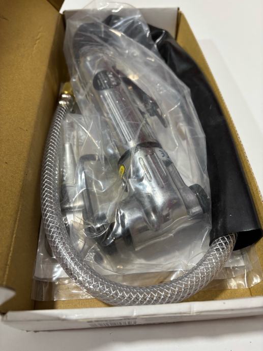 Pneumatski rezač/nož alat je nov, neotvoren. Alat dolazi sa kutijom i svim priborom.