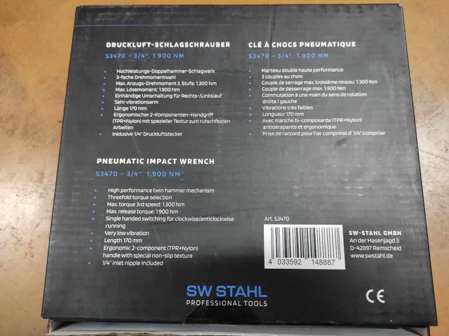 Prodajem potpuno novi pneumatski pištolj (odvijač) 3/4 cola SW Stahl 1900Nm