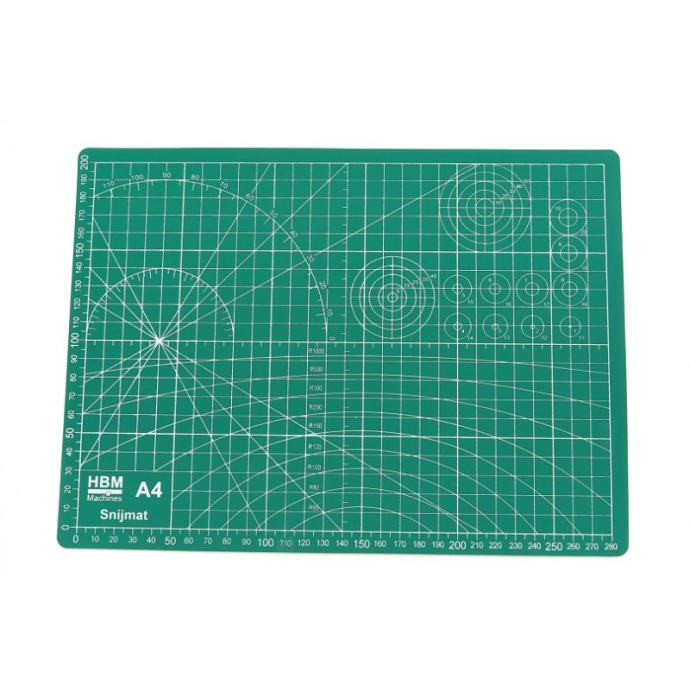 podloga za rezanje izgleda kao jednostavan pribor, no za prostirku za rezanje postavljaju se mnogi zahtjevi:podloga za rezanje mora biti ravnapodloga za rezanje ne bi se trebala lako rezatipodloga za rezanje ne bi trebala utjecati na smjer rezanja, pa bi trebala imati homogen gornji slojpodloga za rezanje trebala bi zaštititi temeljnu ploču stolavisokokvalitetne HBM prostirke za rezanje ispunjavaju sve ove zahtjeveove prostirke za rezanje sastoje se od troslojnog sendviča debljine 3 mm od tvrde plastike (HD polistiren - protiv rezanja), sa samozarastajućim elastomerom s obje strane (površina rezanja). Zbog tvrdog sloja u sredini, podloga za rezanje se ne može lako rezati i podloga zadržava svoj oblik čak i nakon česte uporabeHBM prostirke za rezanje mogu se koristiti s obje strane i opremljene su praktičnim otiscima s obje strane, kao što su linije, krugovi i kutomjeri, koji služe kao referenca prilikom rezanjadimenzije: A4 - 210 x 297 mm]]>