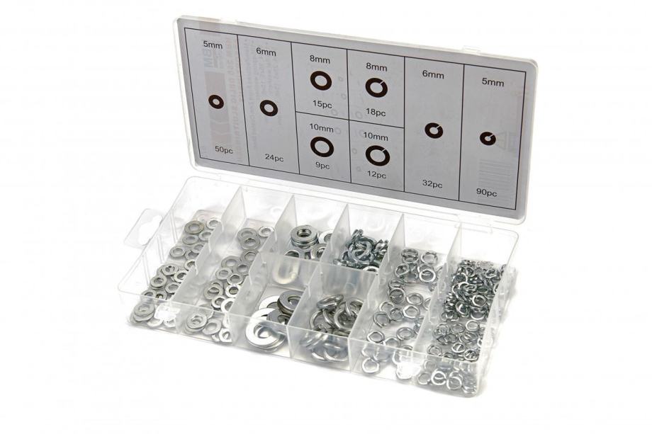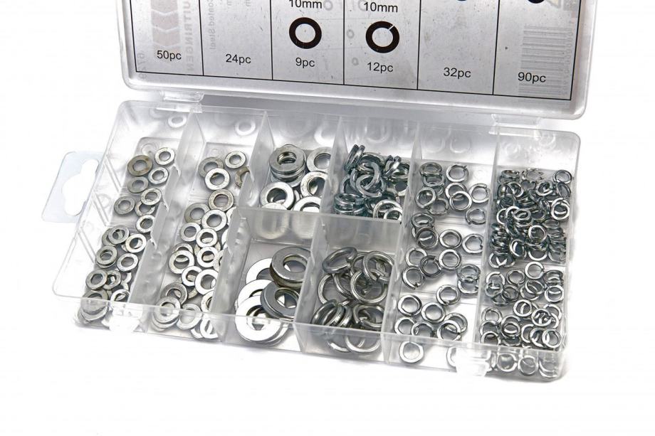 ovaj set sadrži mnogo različitih vrsta podloška s različitim veličinamakao profesionalni vodoinstalater ili "uradi sam" radite vrlo fleksibilnoprstenove dobivate u plastičnoj kutiji sa čvrstim poklopcemna taj način uvijek možete sigurno spremiti materijale i bez problema ih ponijeti sa sobom na rad na licu mjestana dnu kutije se nalazi nekoliko pretinaca u koje možete pohraniti prstenje prema vrstine samo da imate tako jasan pogled na sadržajtakođer možete brzo pronaći vrstu koja vam je potrebna i ispravno zamijeniti prstenovetada je potraga za pravom vrstom prstena još lakša zahvaljujući papirnatom listu u poklopcuna ovome su prikazane sve vrste prstenova, s donjim dimenzijamaprstenovi se sastoje od visokokvalitetnog metala i stoga su prikladni za brtvljenje cijevi i cijevi, ali i, na primjer, vijčanih spojevapocinčana baza čini prstenove vrlo laganim i lakim za rukovanjeSadržaj kompleta:50kom X 5mm podloške24kom X 6mm podloške15 kom X 8 mm podloške9kom X 10mm podloške18 kom X 8 mm opružna podloška12kom X 10mm opružna podloška32kom X 6mm opružne podloške90kom X 5mm opružne podloške]]>