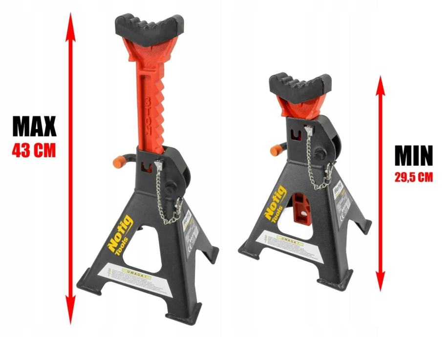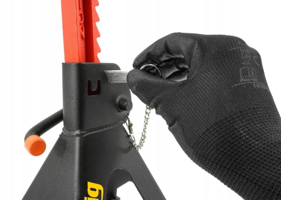 Posebna, dodatna brava u obliku klina osigurava mehanizam zupčastog mehanizma od nenamjernog spuštanja potpornog stupa. Klin je opremljen čeličnim kabelom pričvršćenim za tijelo postolja, što ga štiti od gubitka.