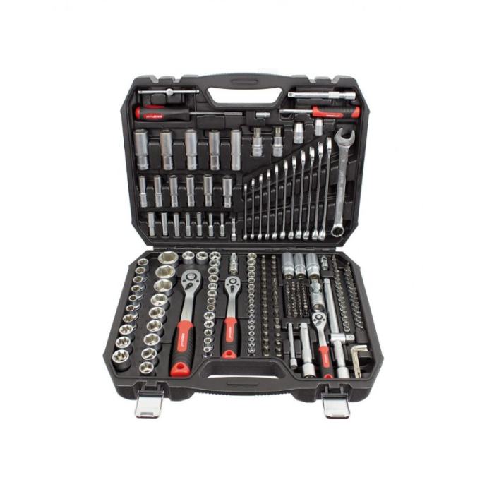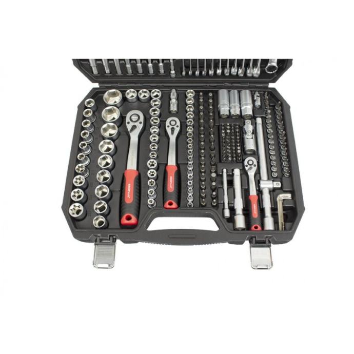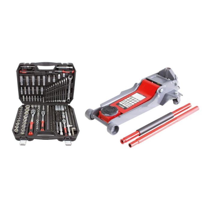 Podna dizalica 3.5 tone nosivosti:kapacitet: 3.5Tminimalna visina: 95 mmmaksimalna visina: 540 mmbruto težina: 45 kgdimenzije: 95x230x415mmnemojte pomicati ili vozikati vozilo dok je na dizalici.teret se mora odmah poduprijeti dizalicom ili drugim odgovarajućim sredstvima.nemojte se preopteretiti. Preopterećenje može uzrokovati oštećenje ili kvar dizalice.podižite samo na područjima vozila koja je odredio proizvođač vozila.ova dizalica je dizajnirana za korištenje na tvrdim, ravnim površinama koje mogu izdržati opterećenje. Korištenje na ravnim površinama koje nisu tvrde može rezultirati nestabilnošću dizalice i mogućim gubitkom opterećenja.nemojte ulaziti ispod vozila dok se dizalica koristi kao jedini oslonackoristite samo originalne tvorničke zamjenske dijelove kada je potrebna zamjena dijelova.Nepoštivanje svih ovih upozorenja može rezultirati gubitkom tereta, oštećenjem dizalice i/ili kvarom koji rezultira osobnim ozljedama ili oštećenjem imovineSet nasadnih ključeva 218 komada(44x)Bitovi 1/4" Torx: T8, T10, T15, T20, T25, Hex: 3,4,5,6 , Utor: 1, 2 mm, Hex rupa: 3,4,5,6, Utor: 4, 5, 5,5 mm, Phillips: PH1, PH2, Pozidriv: PZ1, PZ2, XZN: M5, M6, M8, klinovi s prorezima: 4,6,8 mm, Torx rupe: T8, T10, T10, T15, T20, T20, T20, T25, T25 , T40, Trokrilni: 1,2,3, Okretni moment: 6,8,10(30x)Bitovi 5/16"Torx: T25,T27,T30,T35,T40,T45,T50, Hex.: 5,5,5,6,7,8, Utor: 6,6,5,8, Phillips: PH3PH4, Pozidriv: PZ3, PZ4 , XZN: M5, M6, M8, M10(30x)bitovi od 1/4".Utor: 4,5.5,6.5,7mm, Pozidriv: PZ1,PZ2,PZ3, Torx: T8,T9,T10, T15,T20,T25,T27,T30 Hex.:3,4,5,6mm, Phillips: PH1, PH2,PH3(15x)1/2" kratki imbus ključevi: 10,11,12,13,14,15,17,19,20,21,22,24,27,30,32 mm(13x)1/4" imbus ključevi: 4, 4.5, 5, 5.5, 6, 7, 8, 9, 10, 11, 12, 13, 14 mm(12x)Okasti ključevi: 8, 9, 10, 11, 12, 13, 14, 15, 16, 17, 18, 19 mm(10x)L-inbusni ključevi: 1,27, 1,27, 1,5, 1,5, 2, 2, 2,5, 3, 4, 5 mm(10x)3/8” kratki imbus ključevi: 10, 11, 12, 13, 14, 15, 16, 17, 18, 19 mm(7x)1/4” dugački imbus ključevi: 4, 5, 6, 7, 8, 9, 10 mm(6x)3/8” dugački imbus ključevi: 10, 11, 12, 13, 14, 15 mm(6x)3/8” torx ključevi: E8, E10, E12, E14, E16, E18(5x)Dugi šesterokutni nasadni ključevi: 16, 17, 18, 19, 22 mm(5x)1/4” kratki torx ključevi: E4, E5, E6, E7, E8(3x)1/2” kratki torx ključevi: E20, E22, E24(3x)Univerzalni kardani: 1/2”, 3/8” i 1/4”(3x)Adapteri: 1/4”x1/4”, 3/8”x5/16”, 1/2”x5/16”(3x)Čegrtaljke: 3/8”, 1/4”, 1/2”(2x)Ključevi za svjećice 1/2”: 16, 21 mm(2x)1/4” 50 i 100 mm povećanja(2x)1/2” 125 i 250 mm povećanja(2x)1/2” ključevi s torx nastavkom: T55, T60(1x)Ključ za svjećice 3/8": 18 mm(1x)Povećanje 3/8” 125 mm(1x)Klizač od 1/4”.(1x)1/2” T adapter(1x)Ručka s adapterom za bitove od 1/4”.]]>