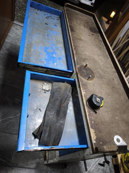 Prodajem police i stol za opremanje teretnog prostora kombi vozila. Radi se o metalnoj konstrukciji s ladicama, koje omogućuju organizirano odlaganje alata i sitnog materijala