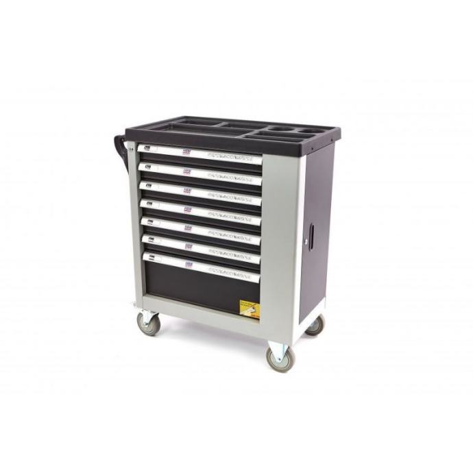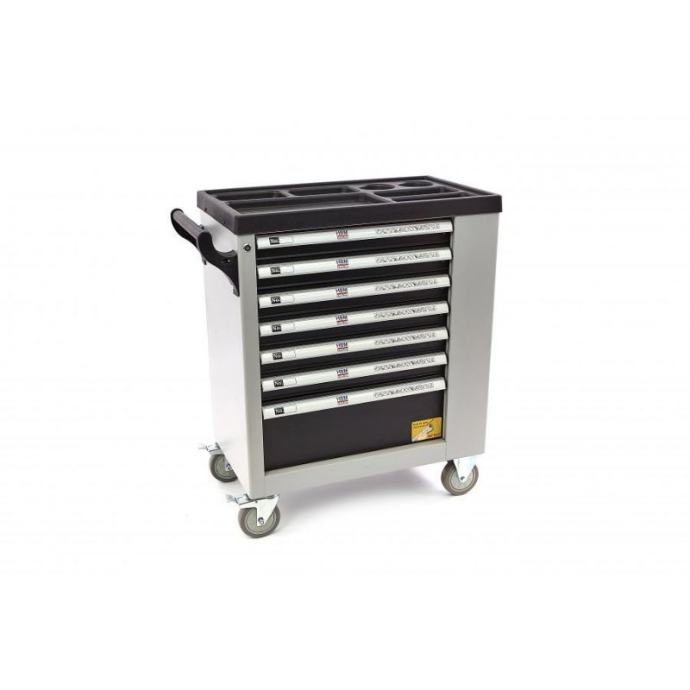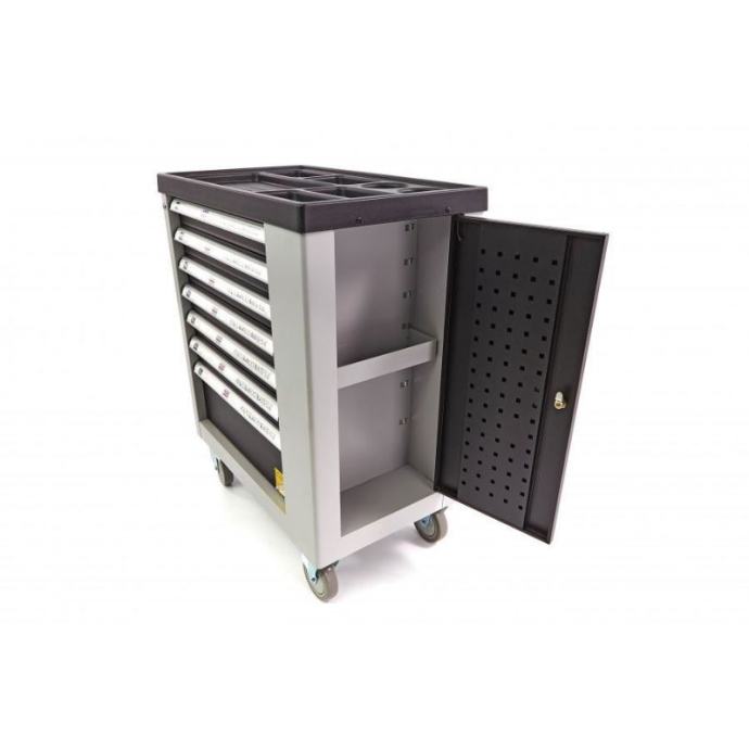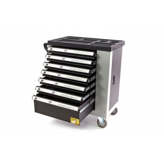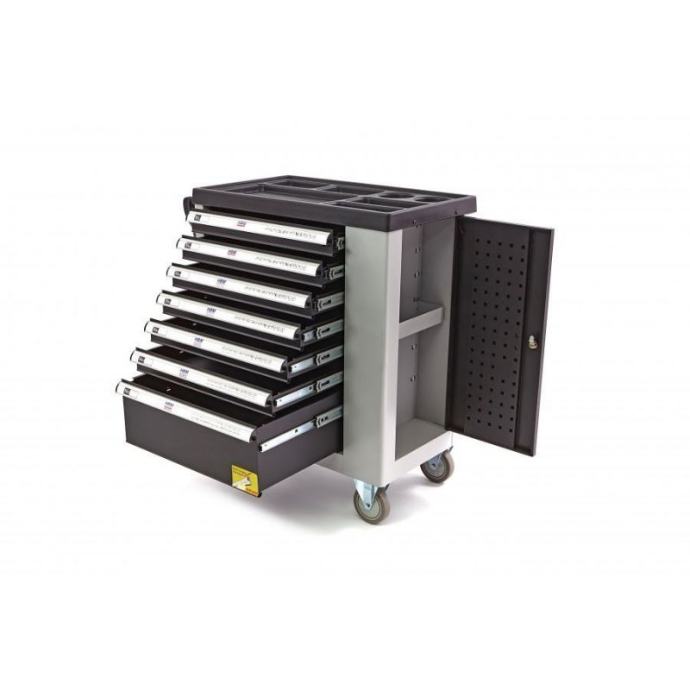 Ova luksuzna kolica za alat HBM sa 7 ladica i vratima svestrano su rješenje, prikladno i za profesionalne radionice i za ozbiljne majstore "uradi sam".