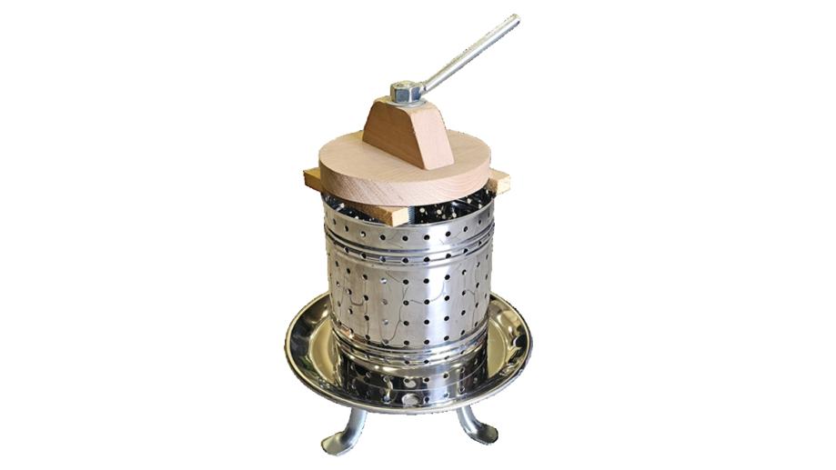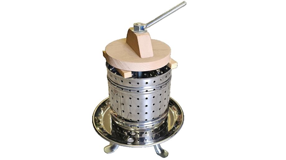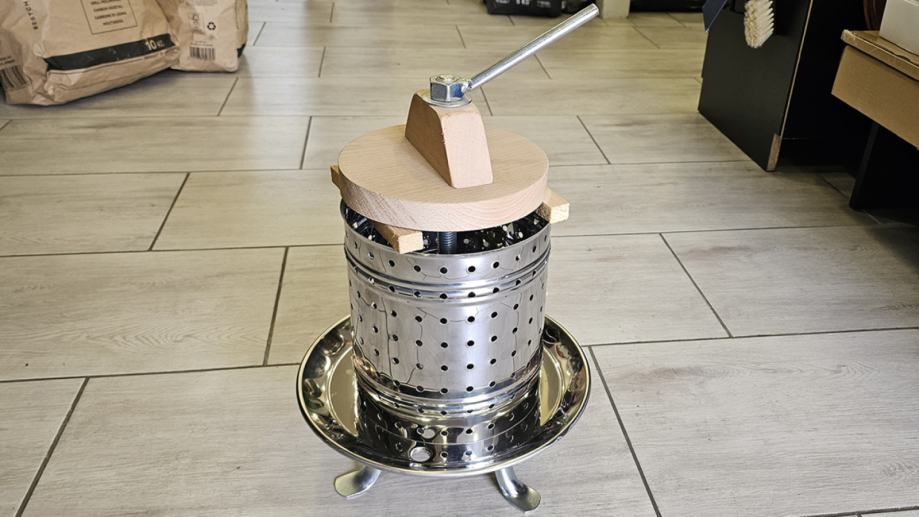 Preša za čvarke 5 litaraInox perforirana posudapromjer 17 cmvisina 20 cmŠipka sa navojem u srediniDrveni elemenri za podlaganjeInox postolje sa nogamaRučka za stiskanje sa navojem