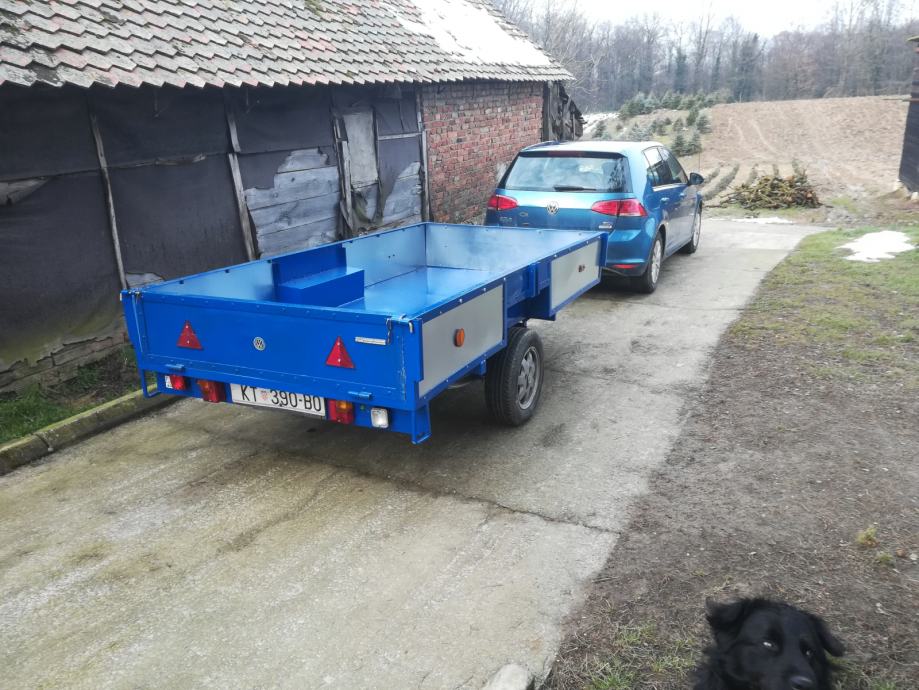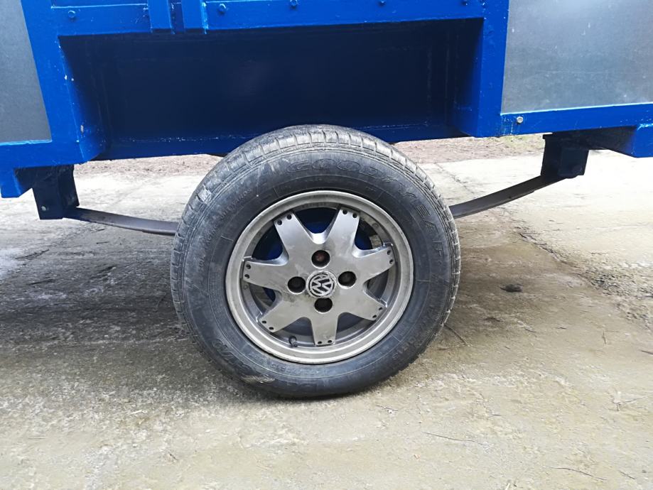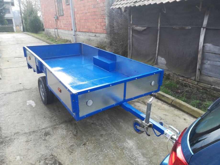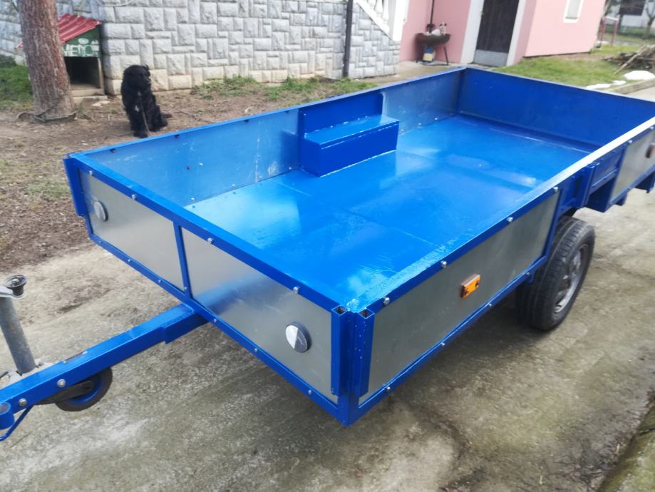 Prikolica, jedna osovina, registrirana 3 godine, potpuno obnovljena, dodatak su povišene stranice (arnjevi), sa povišenim stranicama zapremina unutarnjeg prostora preko 6 m3
