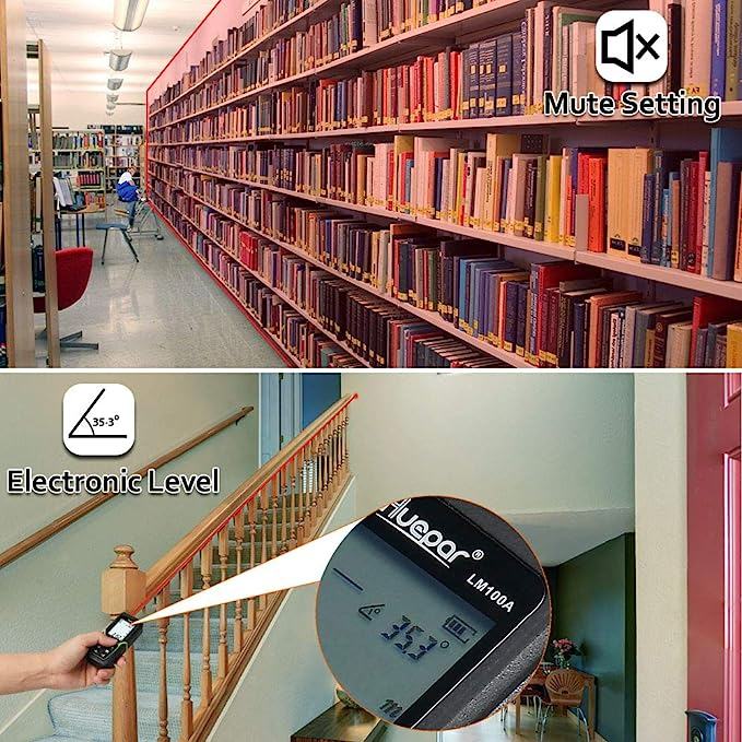 Ugrađeni litij-ion senzor baterije i električnog kuta: Huepar laserski metar, napaljen li-ion baterijom velikog kapaciteta, nudi izuzetan rad za cjelodnevne zadatke i može raditi do 8000 puta kada se u potpunosti napuni. Ne trebate često mijenjati baterije, čineći svoj rad učinkovitijim. Laserska udaljenost, opremljena elektronskim kutnim senzorom, pruža veću preciznost i brže mjerenje kutova u usporedbi s mjehurićima.