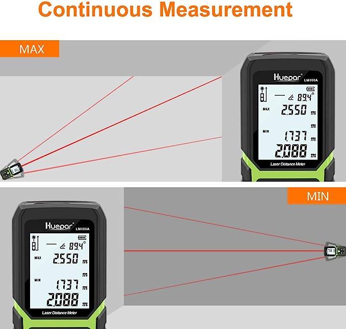 Visoka točnost i izvan jedinice: mjerač udaljenosti Huepar omogućava veliki raspon s izuzetnom preciznošću i može mjeriti udaljenosti do 165 stopa unutar 1/16 inča. Alat se može mjeriti iz prednje/srednje/posljednje referentne točke, što omogućava jednostavno mjerenje u različitim scenarijima. Sva su mjerenja prikazana u stvarnom vremenu i mogu se slobodno mijenjati između M/i FT.