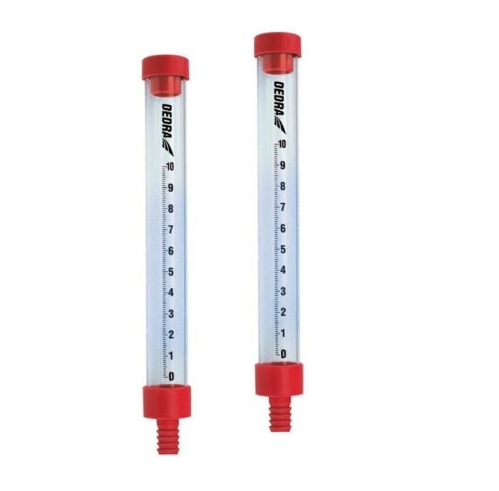 Razina vode opremljena je s dvije plastične mjerne cijevi koje su međusobno povezane prozirnom cijevi.