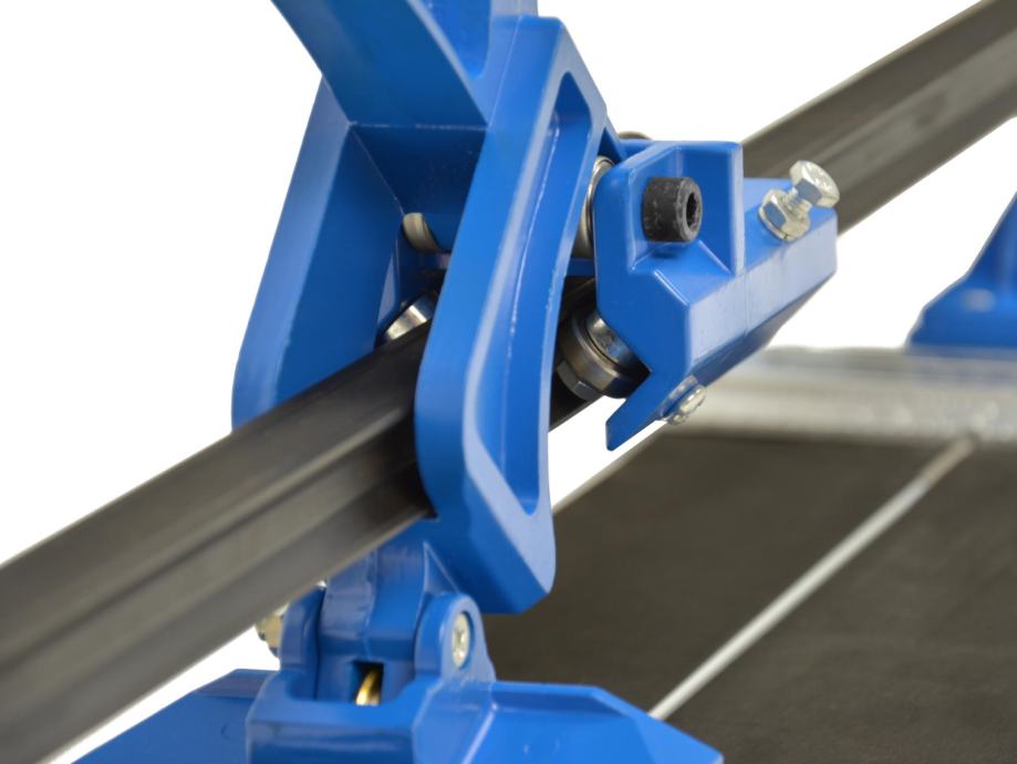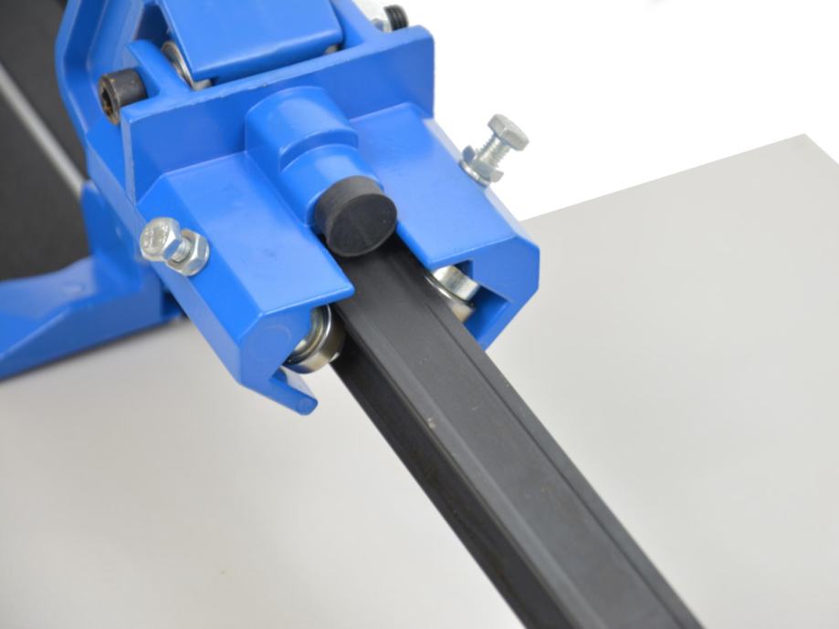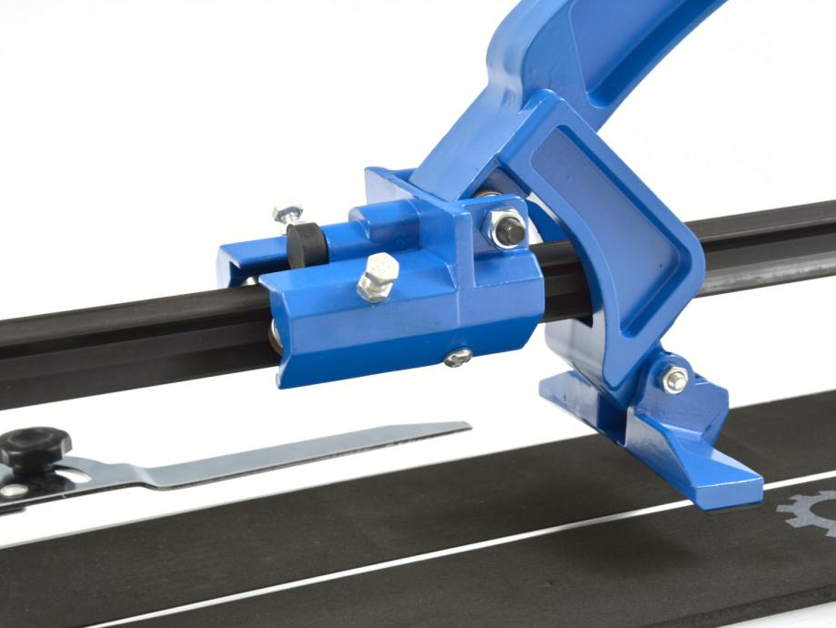 Profesionalni uređaj za rezanje pločica s duljinom od 800 mm. Izdržljiva oštrica volfram karbida s brzim slojem rezanja. Stabilna šina s mehanizmom rezanja na kugličnim ležajevima osigurava precizno rezanje pločica debljine do 16 mm. Metalni ravnalo omogućava vam da precizno izmjerite rez i podesite kut rezanja u rasponu od 0 do 60 °. Aluminijska baza s gumenim nogama osigurava stabilnost uređaja tijekom rada.