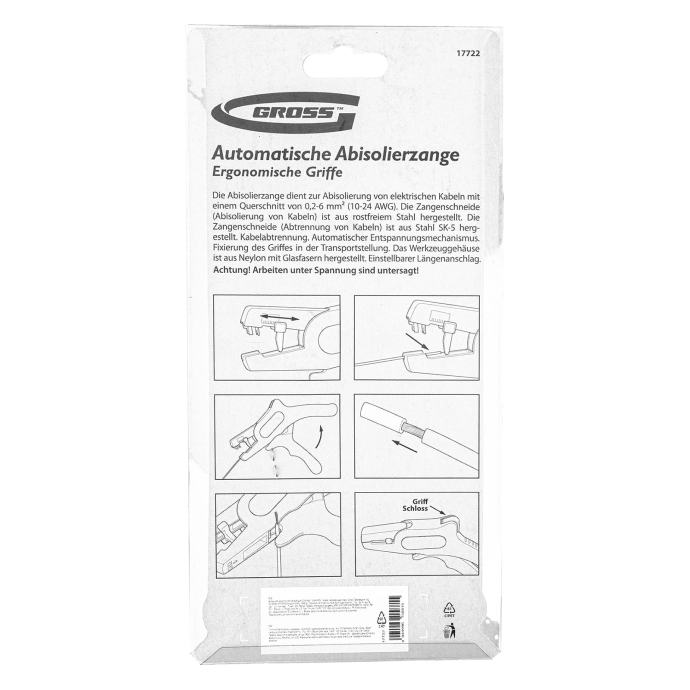 Električni kliješta za uklanjanje žica bruto s lopaticama od nehrđajućeg čelika dizajnirani su za električni rad s žicom od 0,2-6 kvadratnih mm (10-24 AWG). Uz njihovu pomoć, bakreni i aluminijski kabeli mogu se izrezati i očistiti. Alat je pogodan za domaću i profesionalnu upotrebu.
