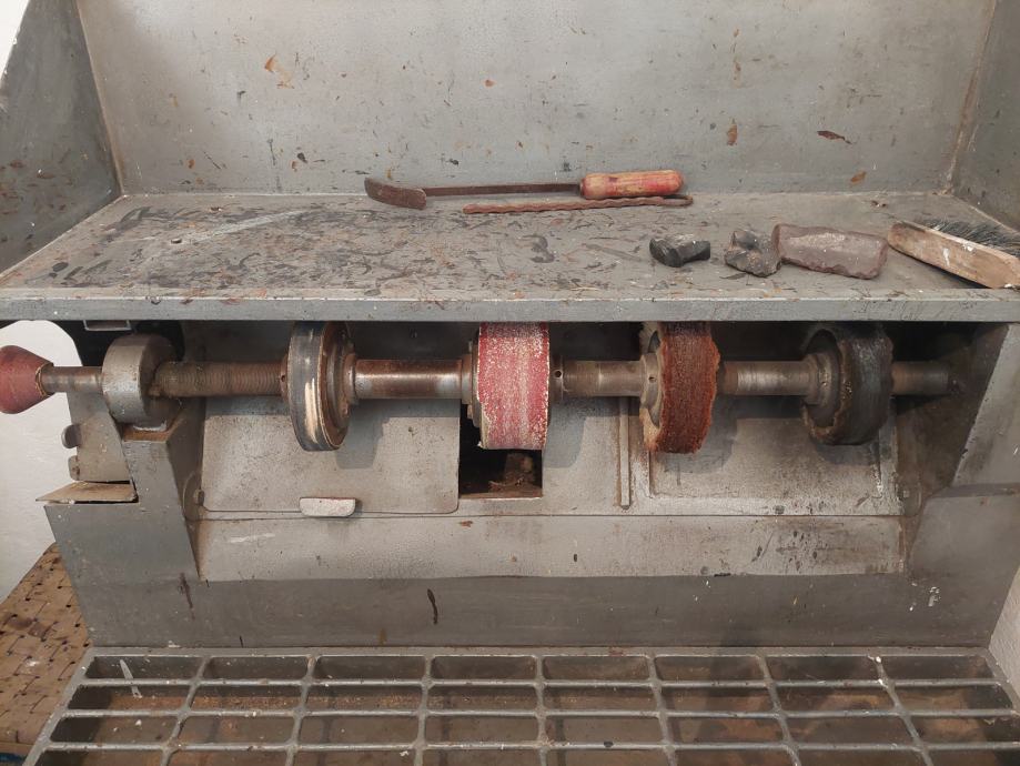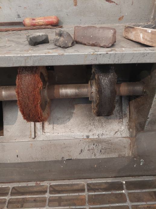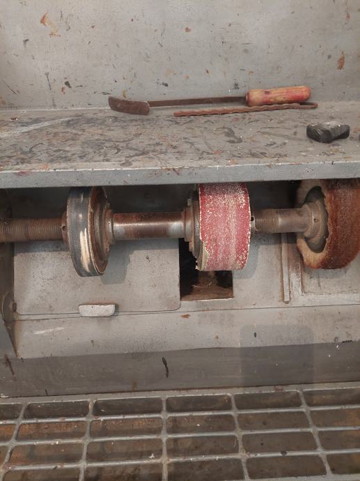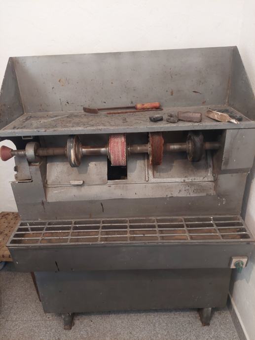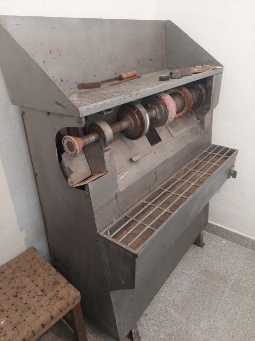 Postolarska frezerica je ručne izrade, dvofazni motor, ima široki i uski brus, jedan brus konusni za pete i dvije četke, sa odličnim usisivačem prašine. Ima i rezervne drvene koluove za bruseve. Cijena 800 Eura.