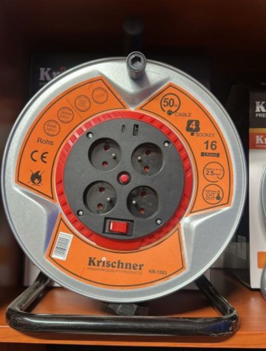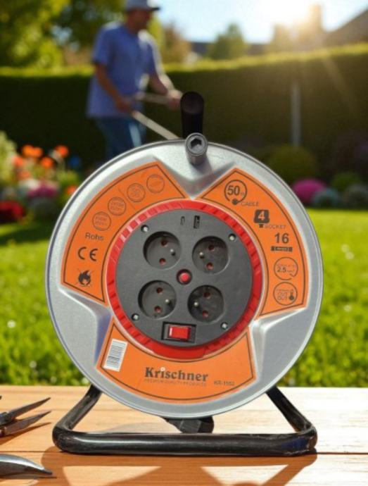 Produžni kabel na metalnom kolutu duljine 50 metara (3x2,5mm) je pouzdan i učinkovit električni alat koji osigurava dugotrajnu i sigurnu opskrbu električnom energijom na različitim mjestima. Proizveden od strane renomirane tvrtke Krischner, ovaj produžni kabel savršeno je rješenje za profesionalce i kućne korisnike kojima je potreban pouzdan izvor napajanja.
