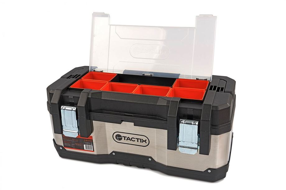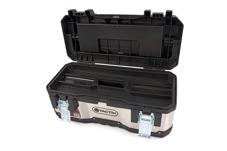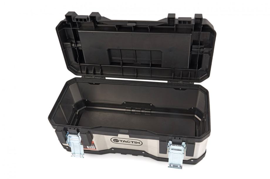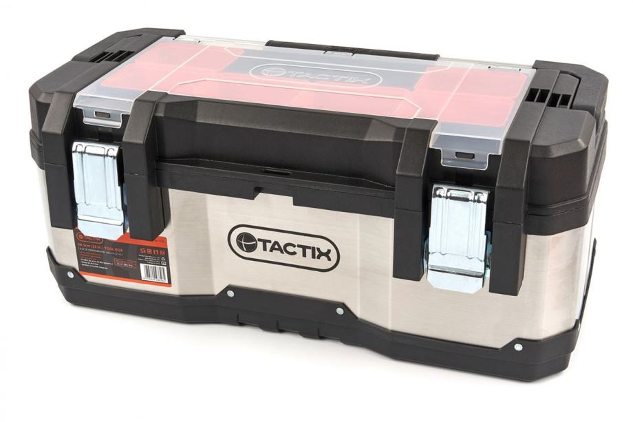 Opis: profesionalne kvalitete za profesionalnog majstorakućište od nehrđajućeg čelikaopremljen čvrstom aluminijskom ručkom s gumenom mekom drškom protiv klizanjačelične kopče za zaključavanje za teške uvjeteisporučuje se s uklonjivom ladicom za alat s ručkom6 x zanimljive uklonjive ladice dimenzija 10 x 7 x 5 cmukupne dimenzije 58,5 x 28,8 x 25,5 cmunutarnje dimenzije 57,5 x 24 x 19 cm]]>