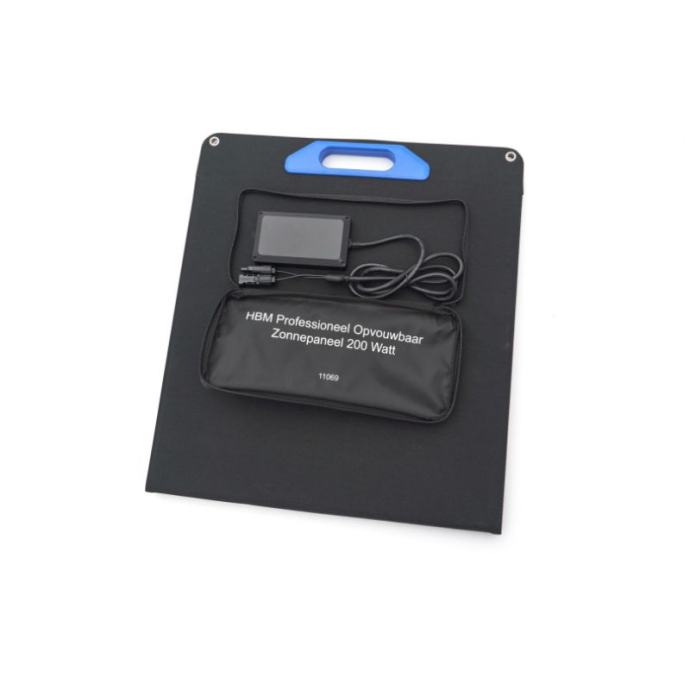 ovaj spektakularni prijenosni solarni panel koji se sklapa u četiri segmenta daje ne manje od 200 W! Može se nositi kao obična mapa portfelja i ima lijepe ručke.cijela ploča je presvučena tkanom crnom tkaninom, a na svakom od četiri segmenta nalazi se po jedna preklopna noga s kojom se panel može postaviti pod kutom na pod.inverter se nalazi u torbici na stražnjoj strani prvog segmenta.Inverter ima dva USB-A izlaza, koji su prikladni za punjenje standardne USB opreme (5V - 2.1A)nadalje, pretvarač ima dva USB-C izlaza koji podržavaju USB-PD (napajanje) protokol. To omogućuje opskrbu moderne opreme s 5/9/15/20 volti i snagom do 100 W (20V - 5 A) po izlazu.inverter također ima prolaz do drugog panela (br. artikla 11070) koji se može spojiti na ovu ploču kao produžetak, s kojim se može generirati ukupno 400 W snage!obje ploče (brojevi stavki 11069 i 11070) imaju ukupno dva USB-A i dva USB-C izlaza. Najveći dio snage od 400 W stoga se napaja preko (ukupno) 4 USB-C izlaza s ovom kombinacijom panela.jedinstvena ploča od 200 W (11069) već daje dovoljno snage za punjenje svih vaših power bankova u kratkom vremenu. Za punjenje jednog mobilnog telefona, ova ploča je stvarno pretjerana i preporučujemo ploču od 60 W ili 100 W (broj artikla 11048 ili 11049).ovaj solarni panel od 200 W (11069) je za ozbiljan rad, kao što je rashladna kutija (s USB-C vezom) i teški power bankovi koji se mogu puniti velikom snagom. Naravno, pogodan je i za punjenje više mobilnih uređaja u isto vrijeme (prikladno za cijelu obitelj).suradnja ovog panela s drugim panelom od 200 W (art broj 11070) omogućuje napajanje rashladne kutije čak i po (malo) oblačnim danima. Naravno, punjenje mobilne opreme više uopće nije izazov s combi od 400 W.oba panela se prodaju zasebno. Ako tražite jednu ploču od 200 W, odaberite 11069. Ako tražite punih 400 W, tada odaberite 10069 + 11070 za obje stavke.Upozorenje: dva komada panela od 200 W (broj artikla 11069) ne mogu se spojiti zajedno za ukupno 400 W! Dakle, za snagu od 400 W potrebne su dvije različite ploče s dva različita broja artikla (11069+11070)!Tehnički opis:Maksimalna snaga 200 vatiUSB-A izlaz 5V/3.4A,9V/2.5A,12V/2A Max (QC3.0 24W)USB-C izlaz 5V/3A,9V/3A,12V/3A,15V/3A Max (PD45W)DC izlaz 18V 11A Maksbrzo punjenje Da (do 45 W)rasklopljena veličina 2280 x 540 x 25 mmsklopljena veličina 610 x 540 x 55 mmTežina 7,6 kg]]>