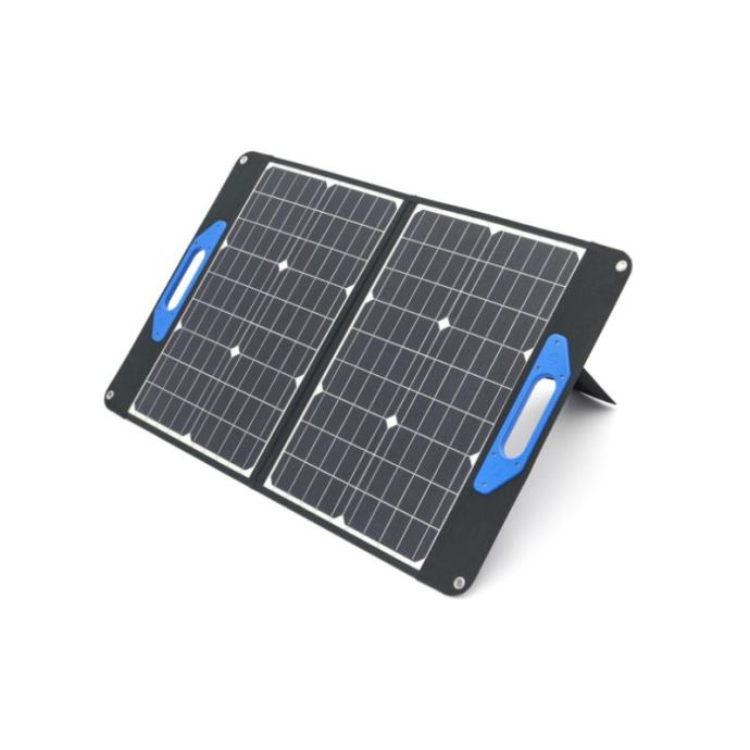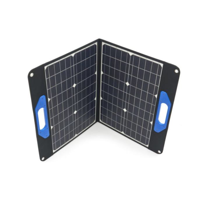 ovaj sklopivi solarni panel snage 60 W može se nositi kao mala mapa portfelja i opremljen je vrlo ugodnim ručkama, što ga čini ugodnim za nošenje. Cijeli panel (osim solarnih ćelija) prekriven je crnom tkaninom.ploča se sastoji od dvije polovice koje se mogu rasklopiti.na poleđini je torbica s patentnim zatvaračem, u kojoj se nalazi inverter.inverter ima USB-A izlaz, koji je prikladan za punjenje standardne USB opreme (5V 2.1A)pretvarač također ima USB-C izlaz koji podržava USB-PD (napajanje) protokol. To omogućuje opskrbu moderne opreme s 5/9/15/20 Volti i snage do 100 W (5 A) (u slučaju ove ploče 60 W).osim reguliranih USB priključaka, pretvarač ima i neregulirani izlaz u obliku kabela s raznim adapterskim utikačima. Ovaj kabel stoga opskrbljuje struju i napon jer dolazi izravno iz ploče (maks. 20 V).kada je rasklopljena, ploča se može postaviti pod kutom u odnosu na pod, zahvaljujući dvije sklopive noge (po jedna na svakoj polovici ploče). Ovim se može dobro kontrolirati stupanj nagnutosti. Noge se pri preklapanju pričvršćuju na panele čičak trakom.solarne ćelije ovog panela su multikristalnog (i fleksibilnog) tipa i imaju prizmatični (plastični) gornji sloj. To znači da ovi paneli i dalje isporučuju relativno veliku snagu čak i po oblačnom vremenu (difuzno svjetlo).Zaključak:ovaj vrlo atraktivan i kompaktan solarni panel od 60 W ima idealnu veličinu i pruža dovoljnu snagu za punjenje nekoliko telefona i power bank u isto vrijemeovo se preporuča za male kampere (pješačenje/biciklizam), koji žele nastaviti koristiti udobnost modernih mobilnih tehnika u divljini. Dovoljno je malen da stane u torbu za bicikl i dovoljno snažan da pruži dovoljno snage za punjenje / korištenje vaše mobilne opreme čak i bez punog sunca.]]>