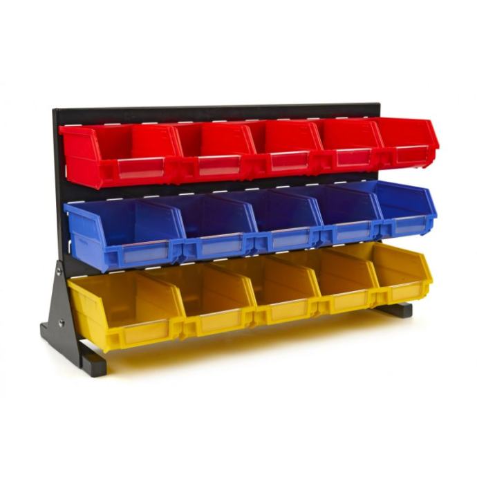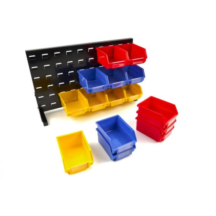 Posebne karakteristikečvrsti stalak na stražnjoj strani spremnika osigurava da uvijek ostanu na mjestu. Čak i kod skladištenja malo težih dijelova i alata.posude savršeno pristaju jedna uz drugu na stalku. To vam omogućuje da na najbolji mogući način iskoristite sav prostor u radionici.budući da su ladice otvorene na vrhu, uvijek možete jasno vidjeti sadržaj. Ovo vam štedi puno vremena tijekom rada. Također možete puno brže pripremiti svoj rad na ovaj način.unatoč čvrstoj konstrukciji, cijeli stalak teži samo nekoliko kilograma. Tako da ovo također možete vrlo lako premjestiti.Opisspremanje alata i dijelova u radionici odmah je lakše zahvaljujući ovom cjelovitom sustavu za pohranu s policama. Stalak je vrlo praktičan za korištenje zahvaljujući preglednom rasporedu. Osim toga, svaka od ladica je izuzetno izdržljiva i čvrsta. Dakle, s njim ćete dobro uložiti, čak i kao majstor koji radi sam. Prozirna traka na prednjoj strani ladica omogućuje njihovo pojedinačno označavanje. Na taj način uvijek imate jasan pregled sadržaja.o HBM Professionals stalak za pohranu s 15 spremnika za pohranuposude su podijeljene po bojama: crvena, žuta i plava. To vam omogućuje prikladno postavljanje radionice. Svaki pladanj možete zasebno odnijeti u radionicu. Ovaj stalak za pohranjivanje savršen je za pohranjivanje vijaka, matica, vijaka i drugih dijelovaTehnički opis: broj posuda: 15vlastita težina: 3,5 kilogramadimenzije police: 54 x 32 x 12,3 cmmaksimalna nosivost stalka: 34 kilogramadimenzija stalka za odlaganje 54 x 32 x 12,3 cmdimenzije ladice za odlaganje 10 x 7 x 13,5 cmbroj spremnika 15težina 3,5 kgmaksimalna nosivost stalka 34 kg]]>