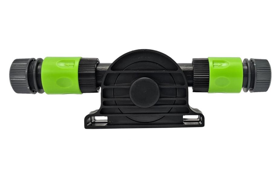 - Priložena brza spojnica odgovara svim uobičajenim 13 mm (1/2 palca) vrtne cijevi i uvršteno s glavom za stezanje. Pumpa se povezuje u sekundi i također se brzo očisti.