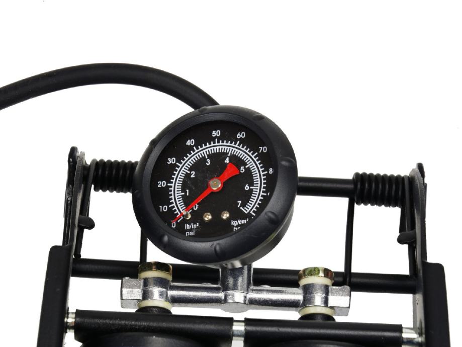 Univerzalna nožna pumpa, visoka učinkovitost zahvaljujući upotrebi dva klipa. Nezamjenjiv u automobilu i u svakom kućanstvu.