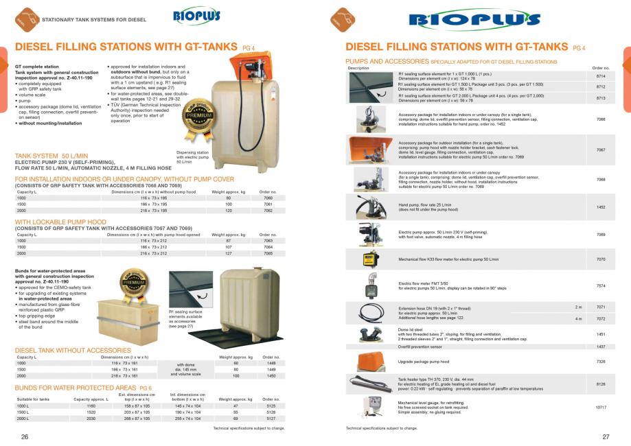 Dostupna raznovrsna, visokokvalitetna oprema, kao što je: crijeva za istakanje, automatski pipci, digitalni mjerači protoka, pokazivači razine medija u spremniku, više vrsta pumpi, zaštitni poklopci, elektronski sustavi za monitoring i kontrolu korištenja sa višestrukim korisnicima, diesel dozatori, razni stalci, ormari, tankvane, zaštite...