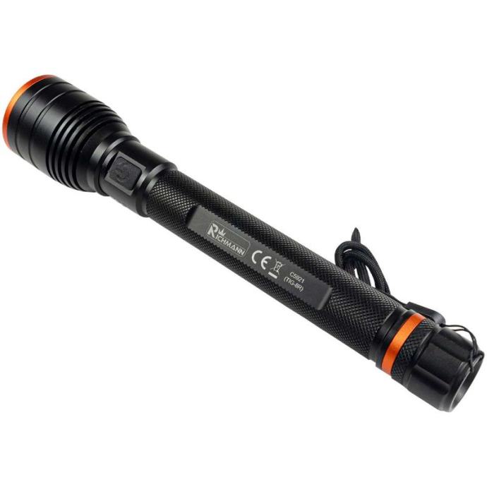 aluminijska svjetiljka opremljena LED diodom od 50 W.emituje svjetlosni tok od 3500lm na udaljenosti do 300m.napaja se baterijom od 4000mAh.tri načina osvjetljenja:puna snagasrednje snagepulsirajuće svjetlosvaki način osvjetljenja ima dostupnu funkciju ZOOM, koja vam omogućuje podešavanje razine protoka svjetlosti.indikator napunjenosti baterije.USB-C priključak za punjenje.USB - USB-C kabel uključen.proizvod ima europski certifikat (CE).uključena je tkanina koja štiti svjetiljku od ispadanja kada je držite u ruci.Tehnički podaci: duljina [mm]: 231izvor svjetla: 50W LEDsnaga svjetla: 3500lmdomet: 300mkapacitet baterije: 4000mAhnapon baterije: 3,7Vcertifikat: CEtežina [g]: 290dimenzije paketa [mm]: 340x140x35]]>