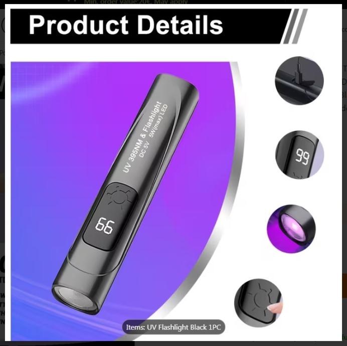Punjiva ručna / džepna mini UV svjetiljka / baterijska svjetiljka - Type C punjenje