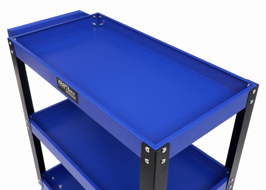 Kolica su opremljena s tri velike police za teret. Otvorene police omogućuju neograničen pristup alatima ili dijelovima za montažu sa svih strana.