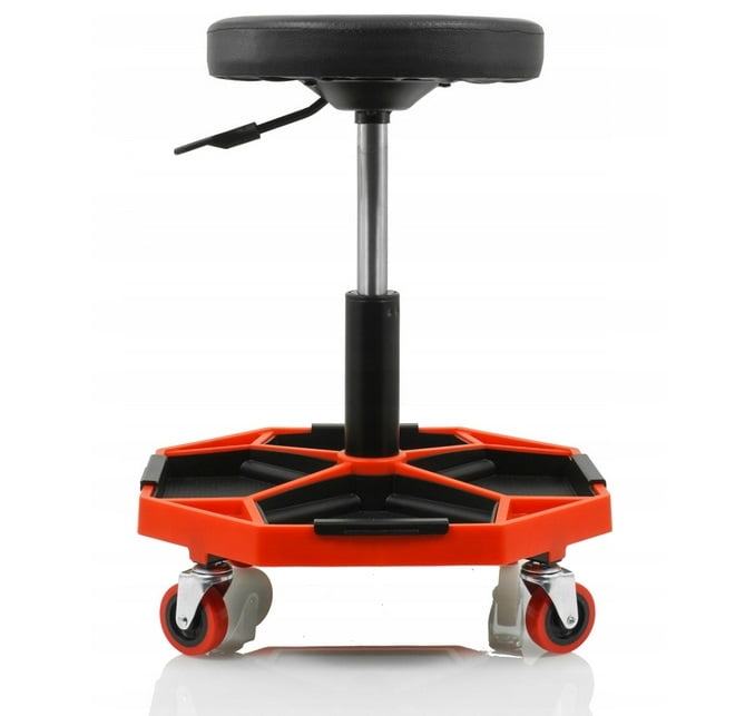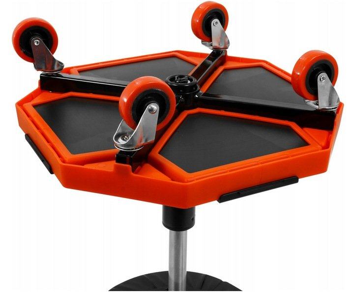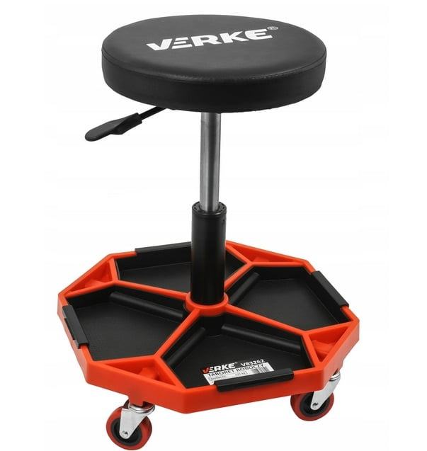 Radionica Verke dizajnirana je za upotrebu u profesionalnim radionicama, uslugama automobila, uslugama, a bit će i izvrsna za kućnu garažu. Ima rotirajuće sjedalo i 4 rotirajuća kotača koji povećavaju njegovu pokretljivost. Praktično rješenje je opremiti ga velikom policom gdje mehaničar može odgoditi alat koji se koristi tijekom rada. Prevlačenje udobnog sjedala izrađen je od PVC -a. Zahvaljujući visinskom pneumatskom podešavanju, lako se prilagoditi visini osobe.