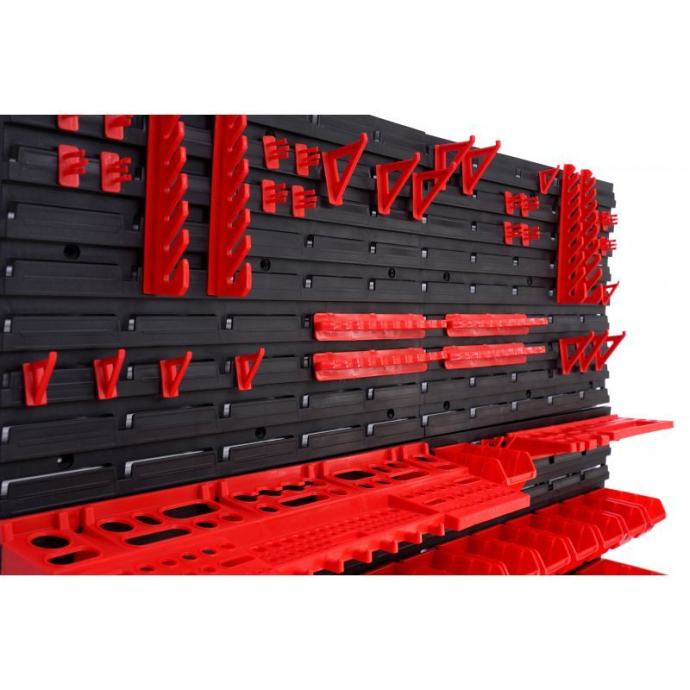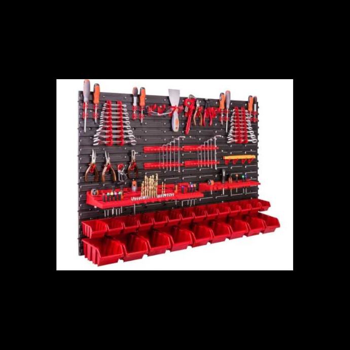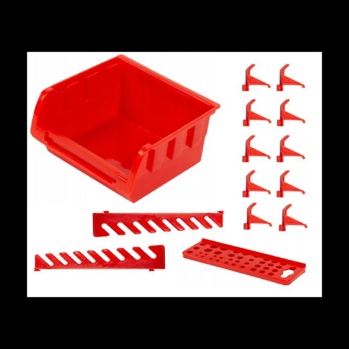 ploča/zid za radionicu pouzdan je način da svoje radno mjesto održite urednimploča vam omogućuje održavanje jasnoće i reda u vašim alatimaploče možemo koristiti u radionici, skladištu, garaži itd.odlično služi i kao izlogizrađen je od visokokvalitetne plastike. Kontejnere i ručke možemo konfigurirati prema našim potrebamacijeli set je vrlo stabilanmontaža ploče je vrlo brza i jednostavna - samo umetnite vijke u rupe za pričvršćivanjeTehnički podaci: duljina: 115 cmširina: 78 cmtežina: 4,9 kgUključuje:14 x spremnika 80 x 115 x60 mm9 x posuda 120 x 195 x 90 mm2 x set privjesaka za ključeve8 x hvataljke odvijača4 x vješalice 5,5 cm4 x vješalice 3,5 cmpolica za alat 384 x 111 x 50 mmpolica za alat 580 x 158 x 67 mm]]>