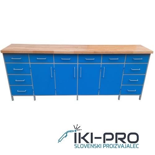 Radni stol dimenzija 300 x 70 cm, zatvoren sa svih strana, s 12 ladica