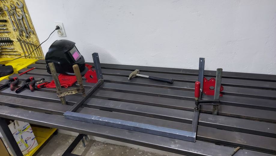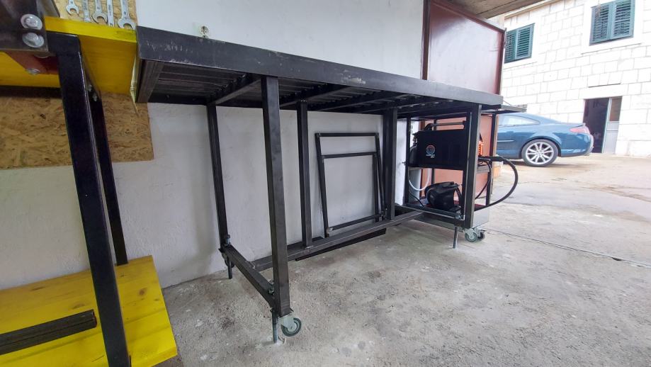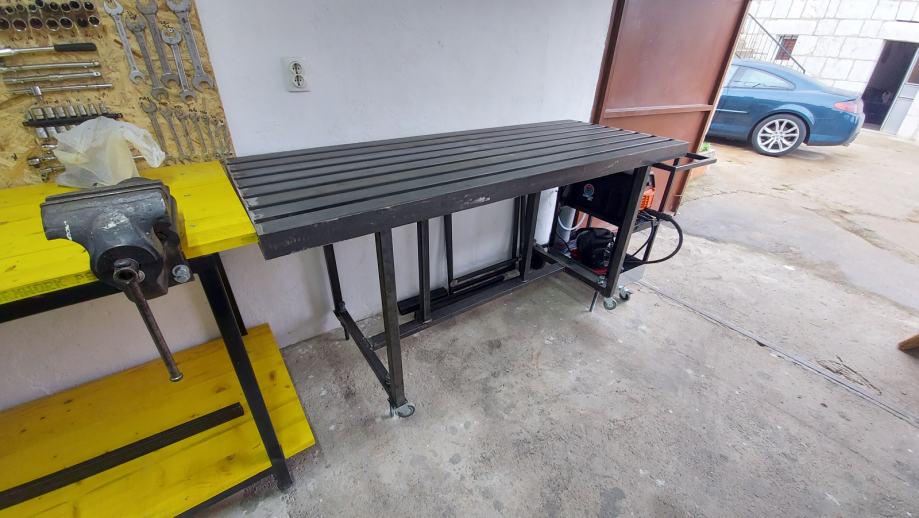 Koristen za varenje, nije bojan tako da se masa spoji na nogu od stola. Profili na radnoj povrsini imaju po 3cm razmaka tako da se moze provuci stega i stegnuti za povrsinu ono sto varite....slika kao primjer