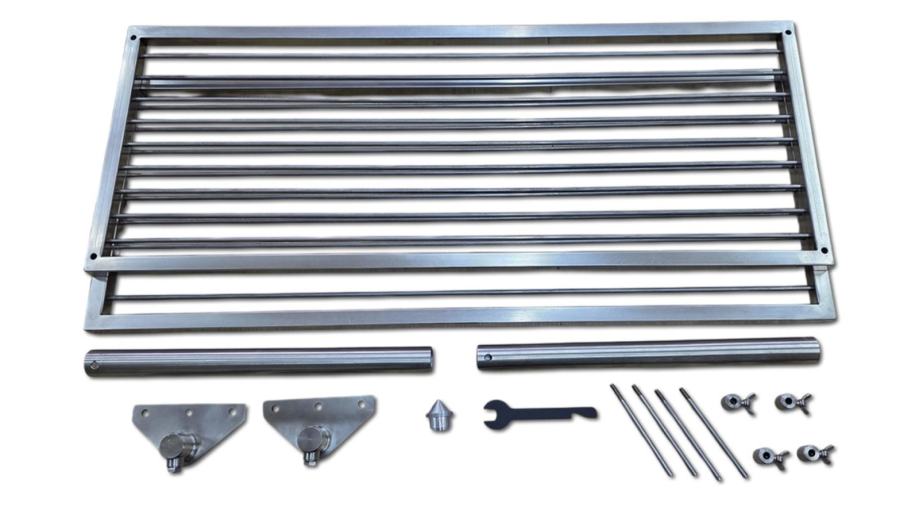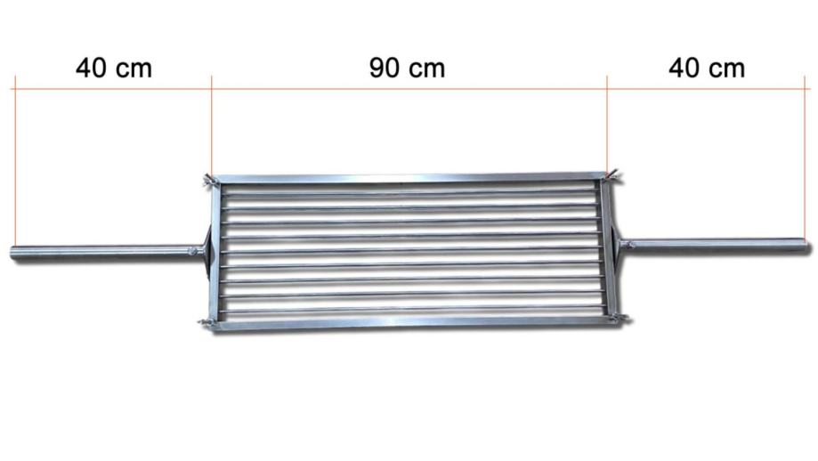 OPIS PROIZVODASPECIJALNI PROIZVOD - RAŽANJ ZA RIBU - UNIVERZAL!Kako bi ubrzali proizvodnju navedenih “Ražnjeva za ribu”, dizajnirali smo “Univerzalni” set sa elementima koji se na licu mjesta odrežu na mjeru i prilagode širini ložišta.Bočne cijevi su duljine 40 cm, vrh cijevi se umetne nakon odrezivanja - ako je rezanje potrebno. I dalje postoji opcija izrade bočnih cijevi po mjeri - uz nadoplatu od 30 eura! Uslugu izrade i prilagodbe cijevi po Vašim dimenzijama pogledajte i naručite na link: Ukoliko ste kod nas kupili komplet za ražanj, usluga prilagodbe cijevi je besplatna!Ukupna duljina ražnja = 170 cmPromjer cijevi:Vanjski promjer 32 mmUnutarnji promjer 29 mmRupa za šplentu 4 mmPaket sadrži:Rešetka gornja i donjaBočni spojni elementi Bočne cijevi duljine 40 cmOkomite šipkice za pričvršćenjeElementi za pričvršćenjeKljuč za montažu (broj 13)Aluminijska špica (vrh ražnja)Vrlo jednostavno i praktično korištenje. Mogućnost pečenja ribe, mesa, pilća i slično.